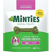 Minties Dog Dental Bone Treats, Tiny/Small Dental Dog Treats, 16 Ounces, Cleans Teeth, Fight Bad Breath, Removes Plaque and Tartar, 40 Count