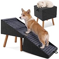 17.13" H Dog Stairs for Small Dogs, 2-in-1 Pet Steps & Ottoman - Foldable Dog Stairs for Couch, Non-Slip Wooden Pet Stairs for Puppy Senior Injured Dogs (Black)