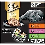Sheba Perfect Portions Wet Cat Food Cuts in Gravy, Cat Food Wet Recipe, Roasted Chicken Entree, with Sustainable Salmon, Tender Turkey Entree, 2.6 oz. Twin-Pack Trays (24 Count, 48 Servings)
